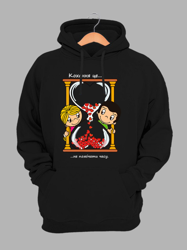 Худі до Дня закоханих з принтом Love is - не помічати часу (0214)