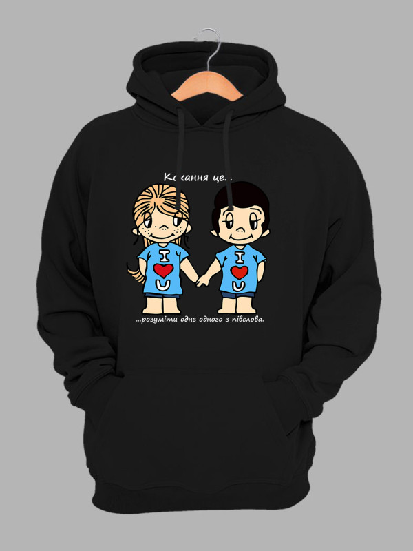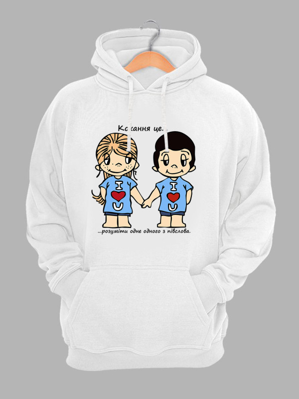Худі на день закоханих з принтом Love is - розуміти одне одного з півслова (0218)