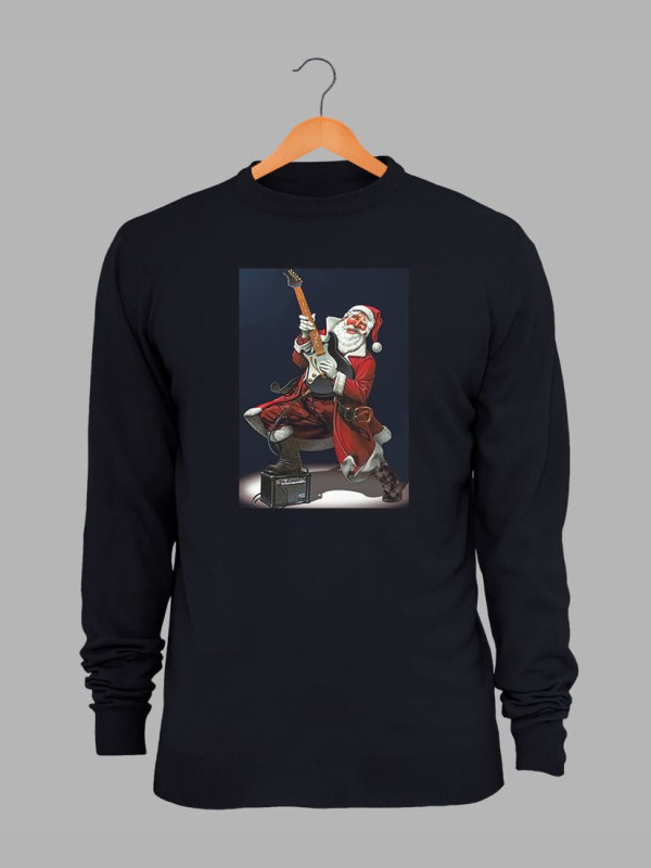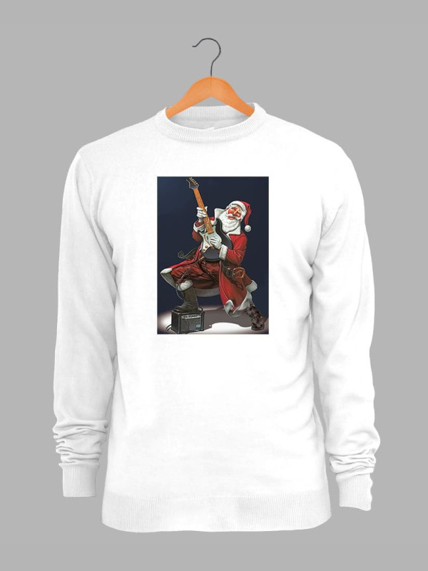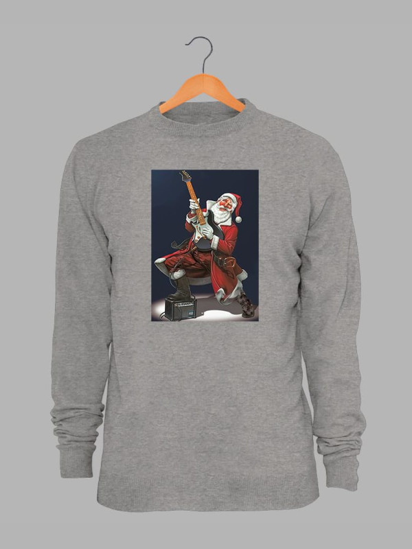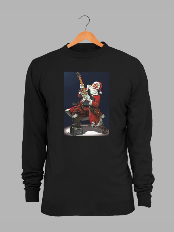 Світшот жіночий з новорічним принтом Санта рок гітарист - 211201