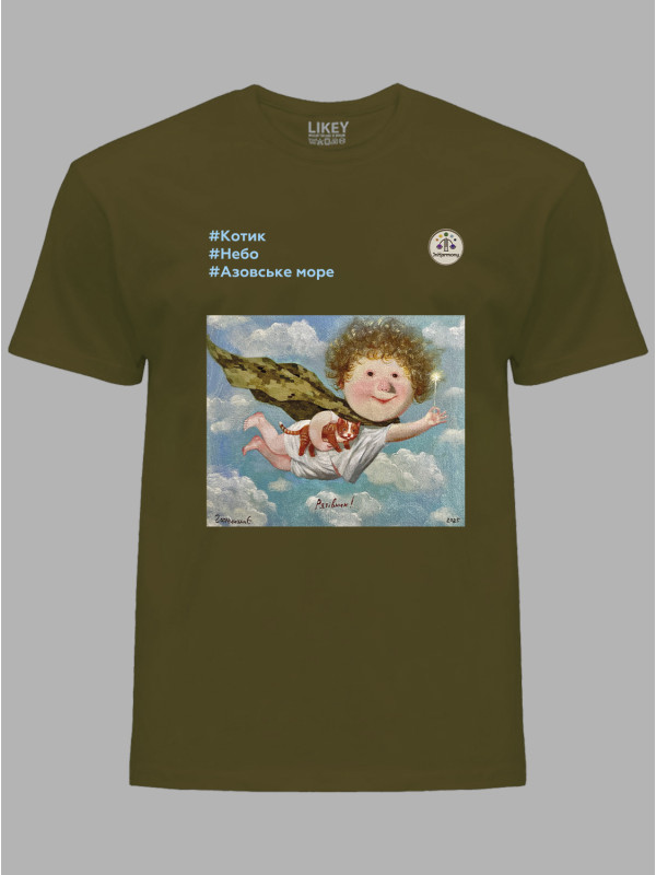 Футболка чоловіча з принтом «Рятівник: #Котик #Небо #Азовське море» Євгенії Гапчинської, 2512002