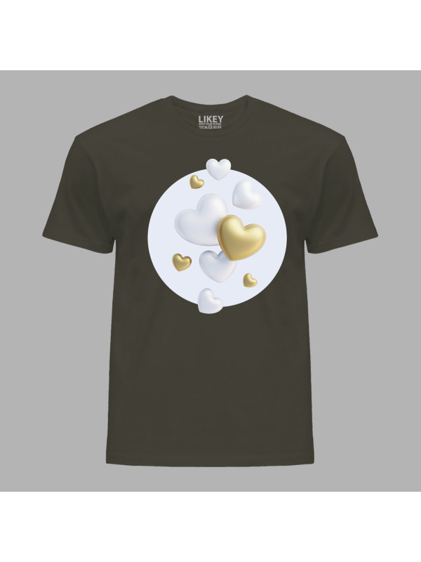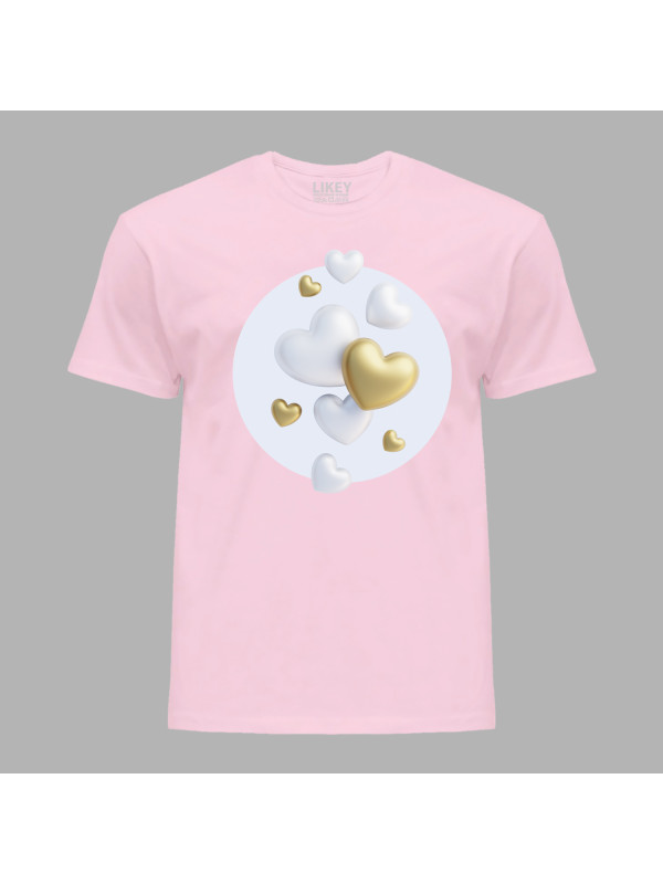 Футболка на день закоханих з романтичним принтом "Білі та золоті серця" (1261)