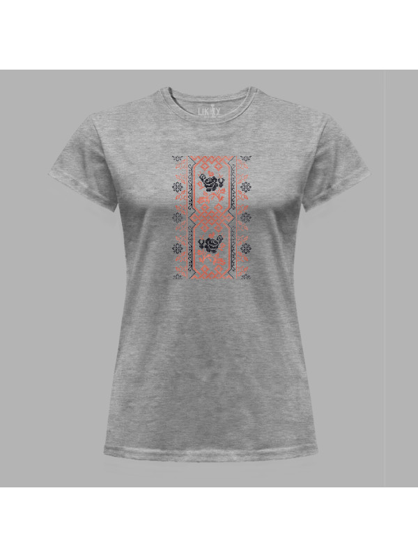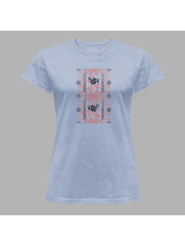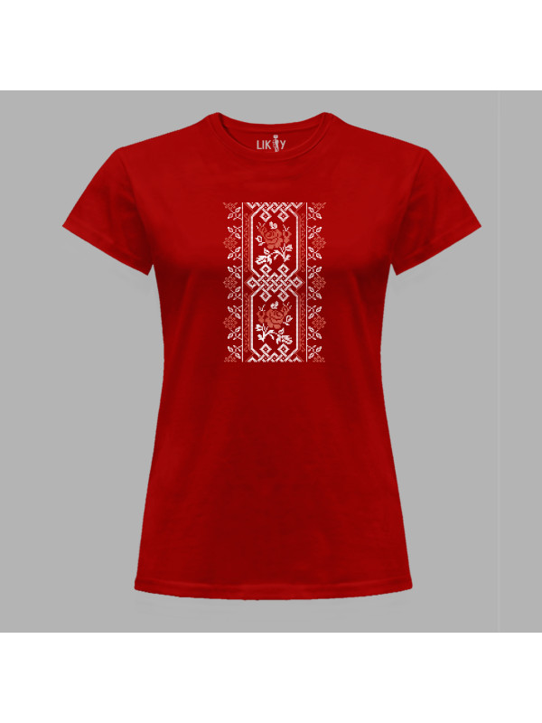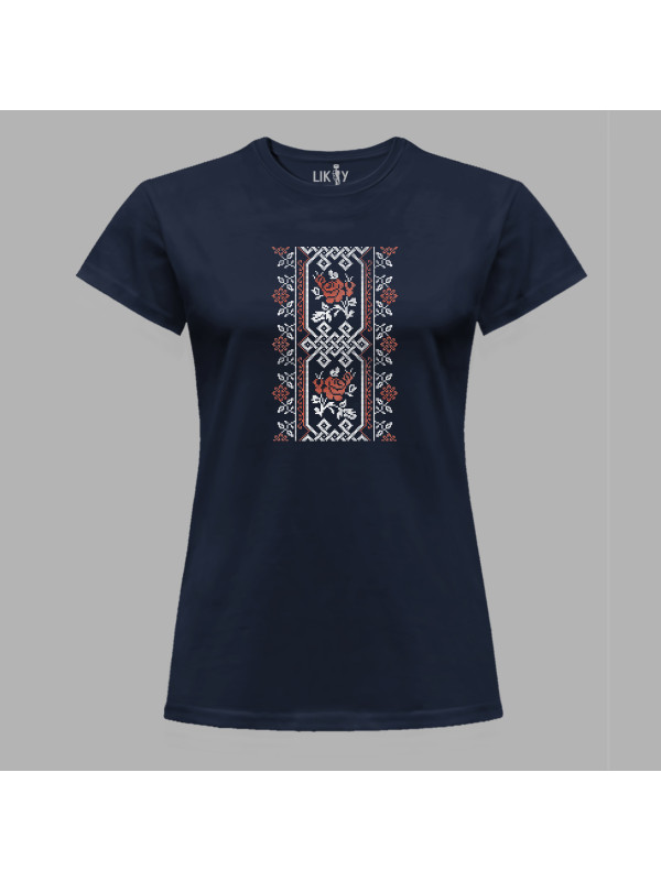 Футболка жіноча з патріотичним принтом "Вишиванка з візерунком та квітами" (011115)