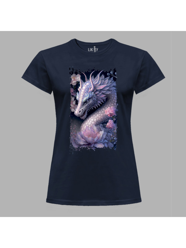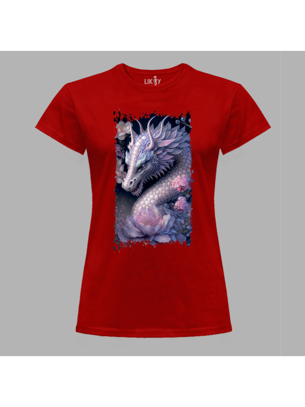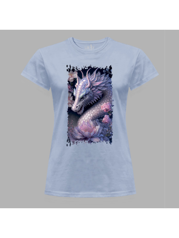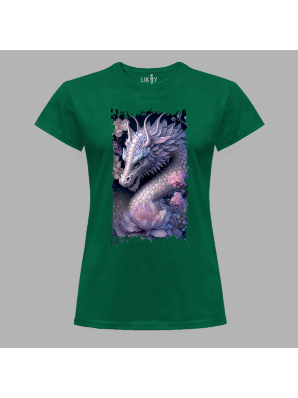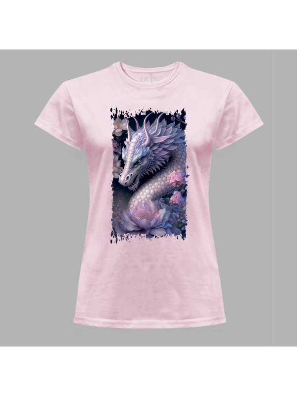 Футболка жіноча з принтом "Дракон та ніжний лотос" (231026)