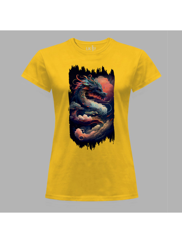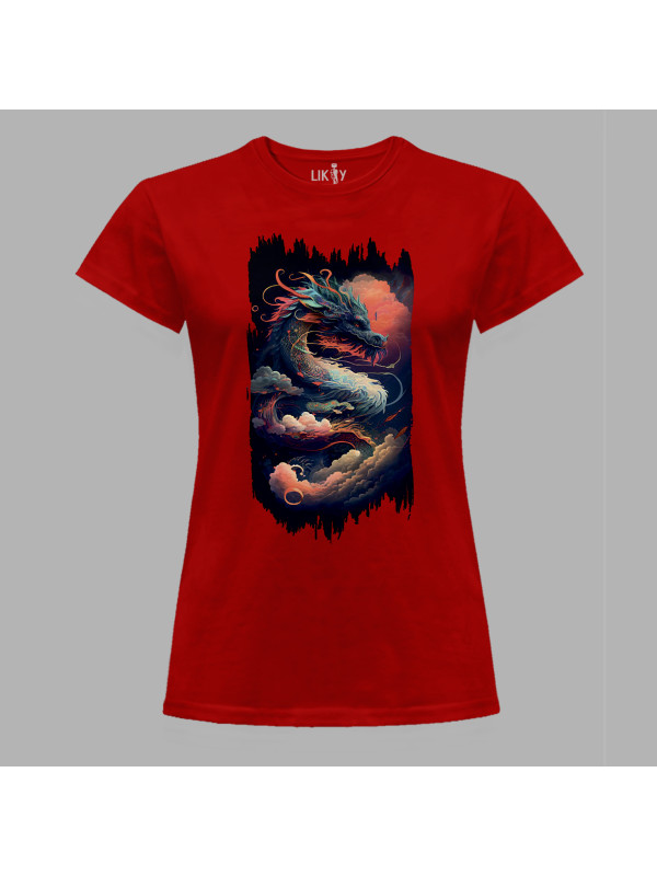 Футболка жіноча з принтом "Повітряно-вогняний дракон" (231006)