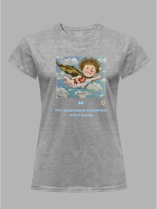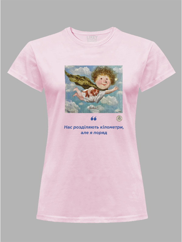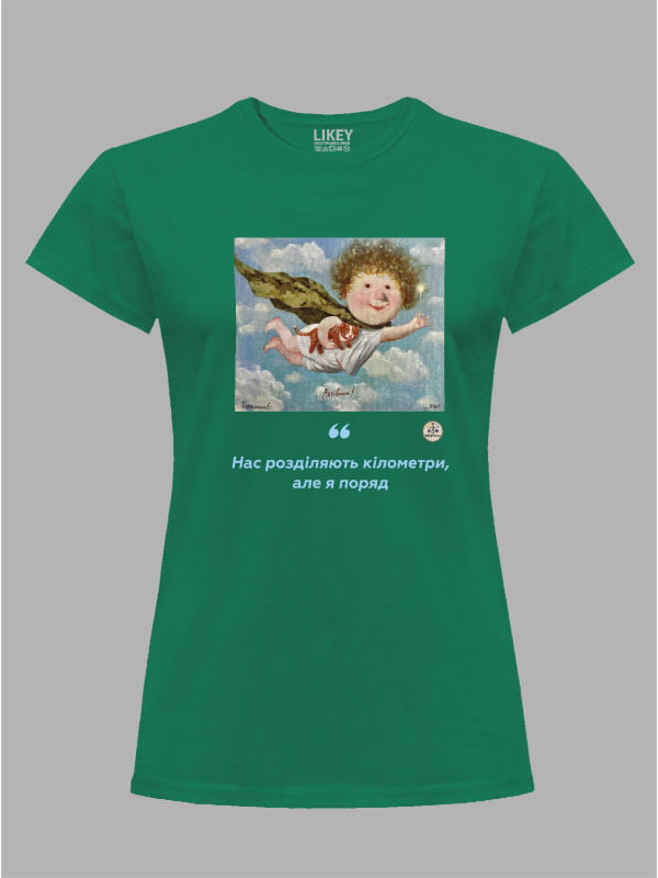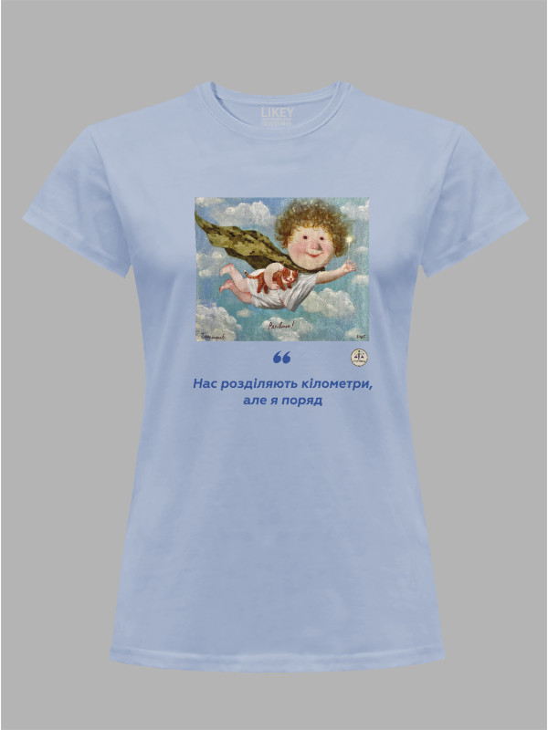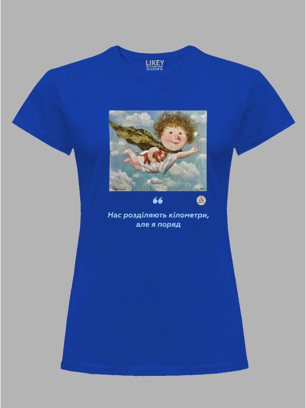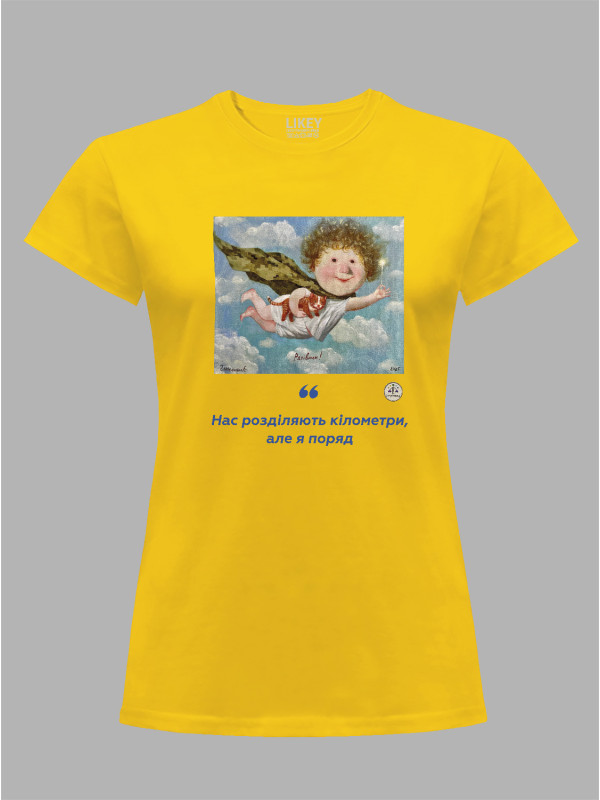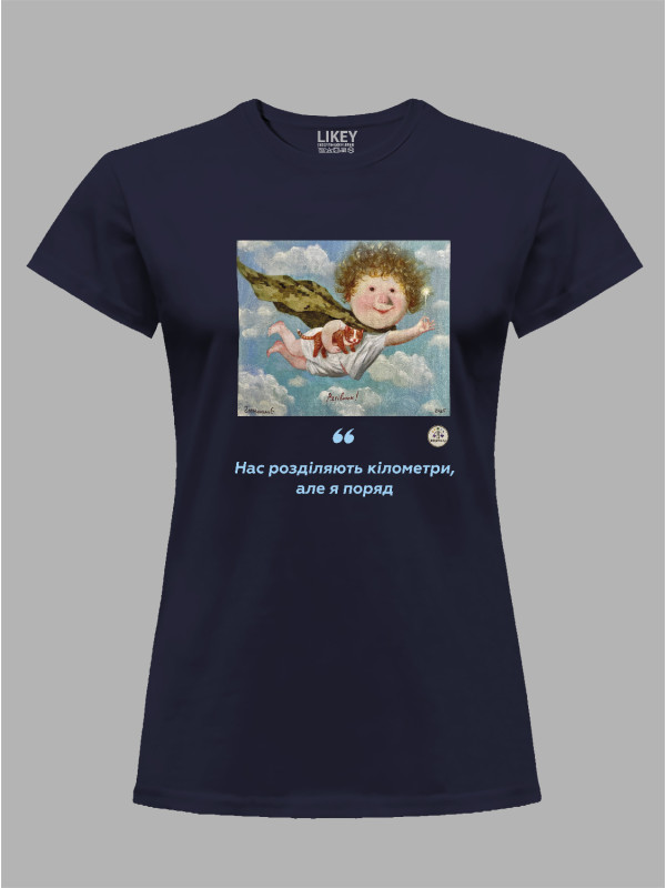 Футболка жіноча з принтом «Рятівник: Нас розділяють кілометри, але я поряд» Євгенії Гапчинської, 2512016