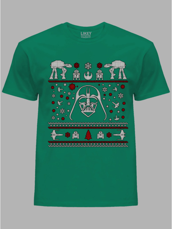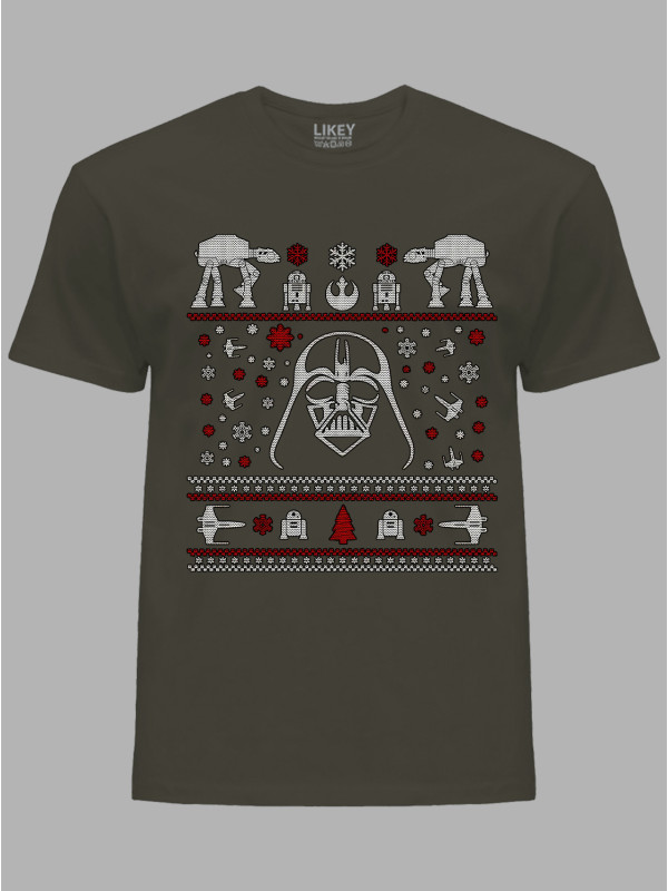 Новорічна футболка чоловіча з принтом "Дарт Вейдер та Зоряні олені" (24110052)