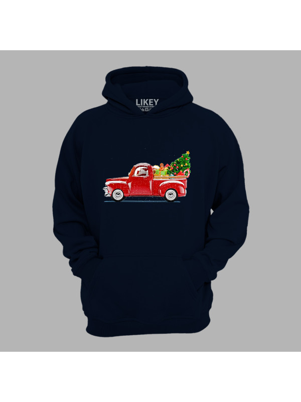 Худи с новогодним принтом "Санта везет подарки на автомобиле" (24012148)