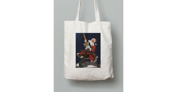 Екосумка шопер з бавовни 38х40см з принтом Санта рок гітарист - 211201