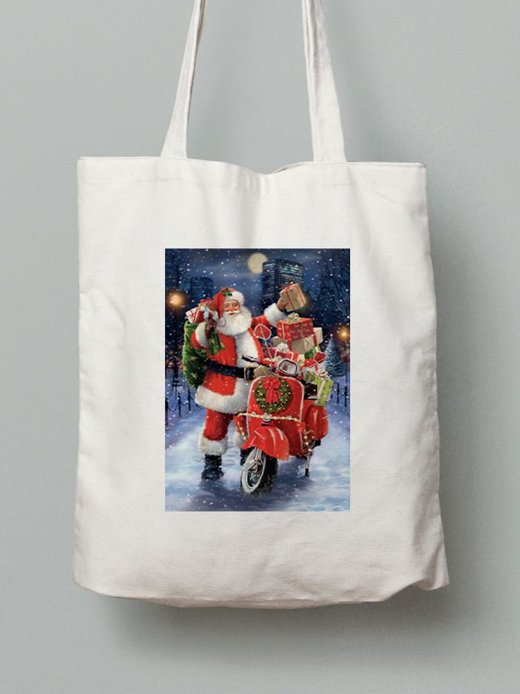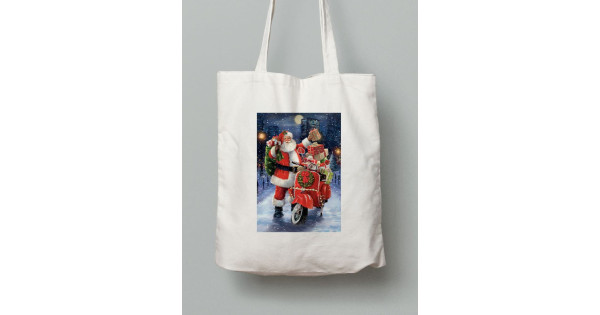 Екосумка шопер з бавовни 38х40см з принтом Санта Клаус з подарунками - 211202