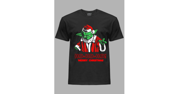 Новорічна футболка чоловіча з принтом "Санта Йода Щасливого Різдва Хо Хо Хо/Santa Yoda Merry Christmas Ho Ho Ho" (24110042)