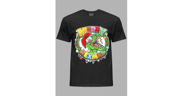 Новорічна футболка чоловіча з принтом "Щасливого Рекс Різдва/Merry Rexmas" (24110059)
