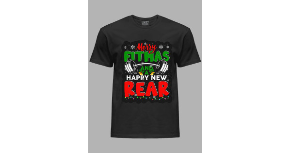 Новорічна футболка чоловіча з принтом "Щасливого фітнес Різдва і Нового Року/Merry fitmas and a Happy New Rear" (24110070)