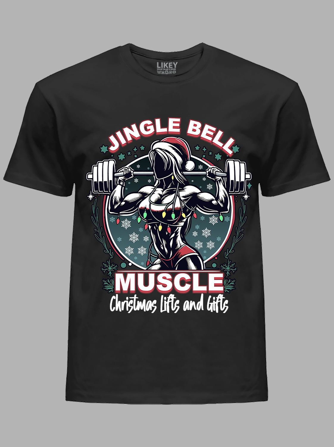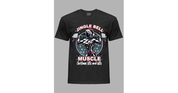 Новорічна футболка чоловіча з принтом "Різдвяні вправи для м'язів та подарунки/Jingle Bell - Muscle Christmas Lifts and Gifts" (24110073)