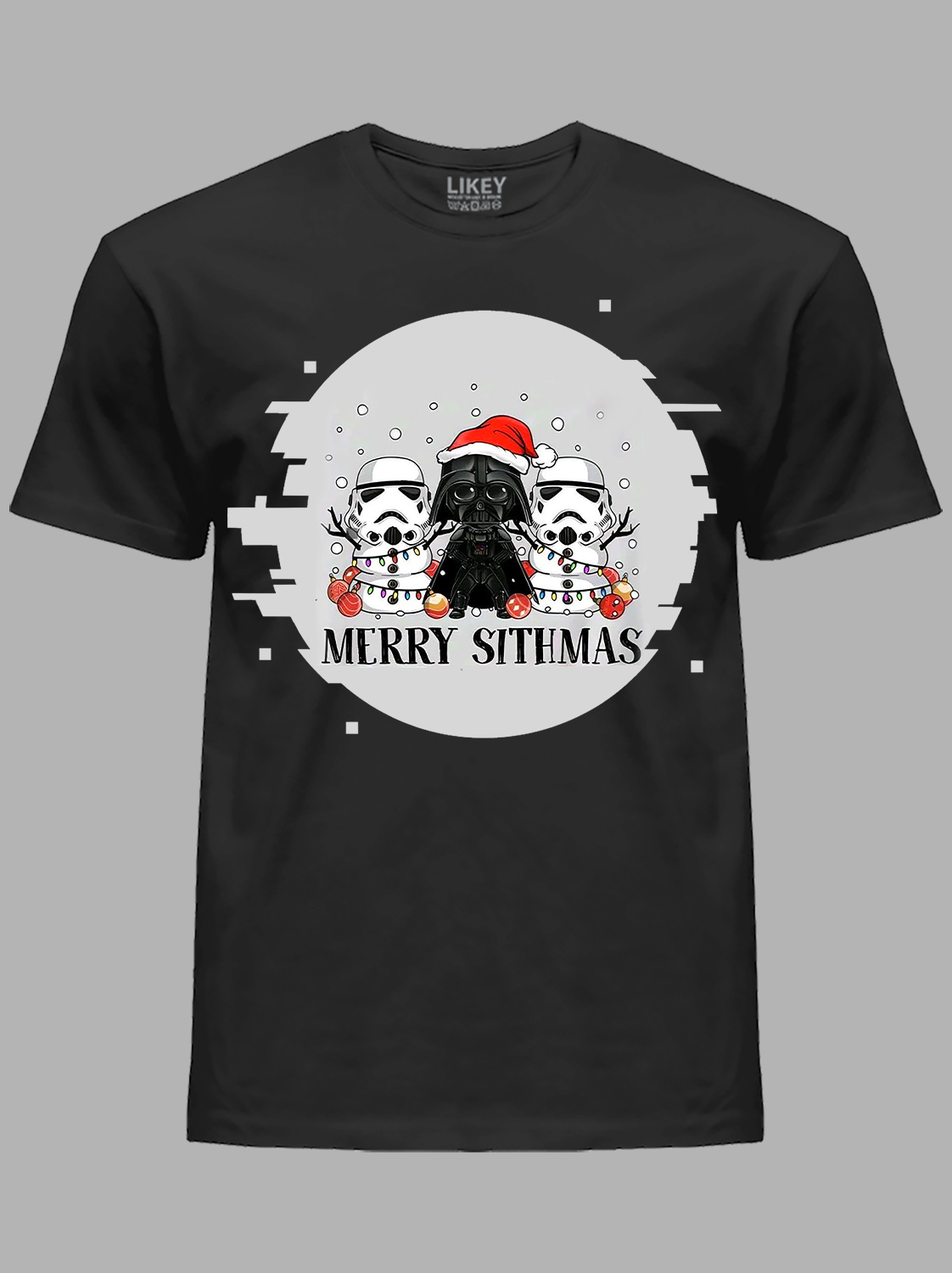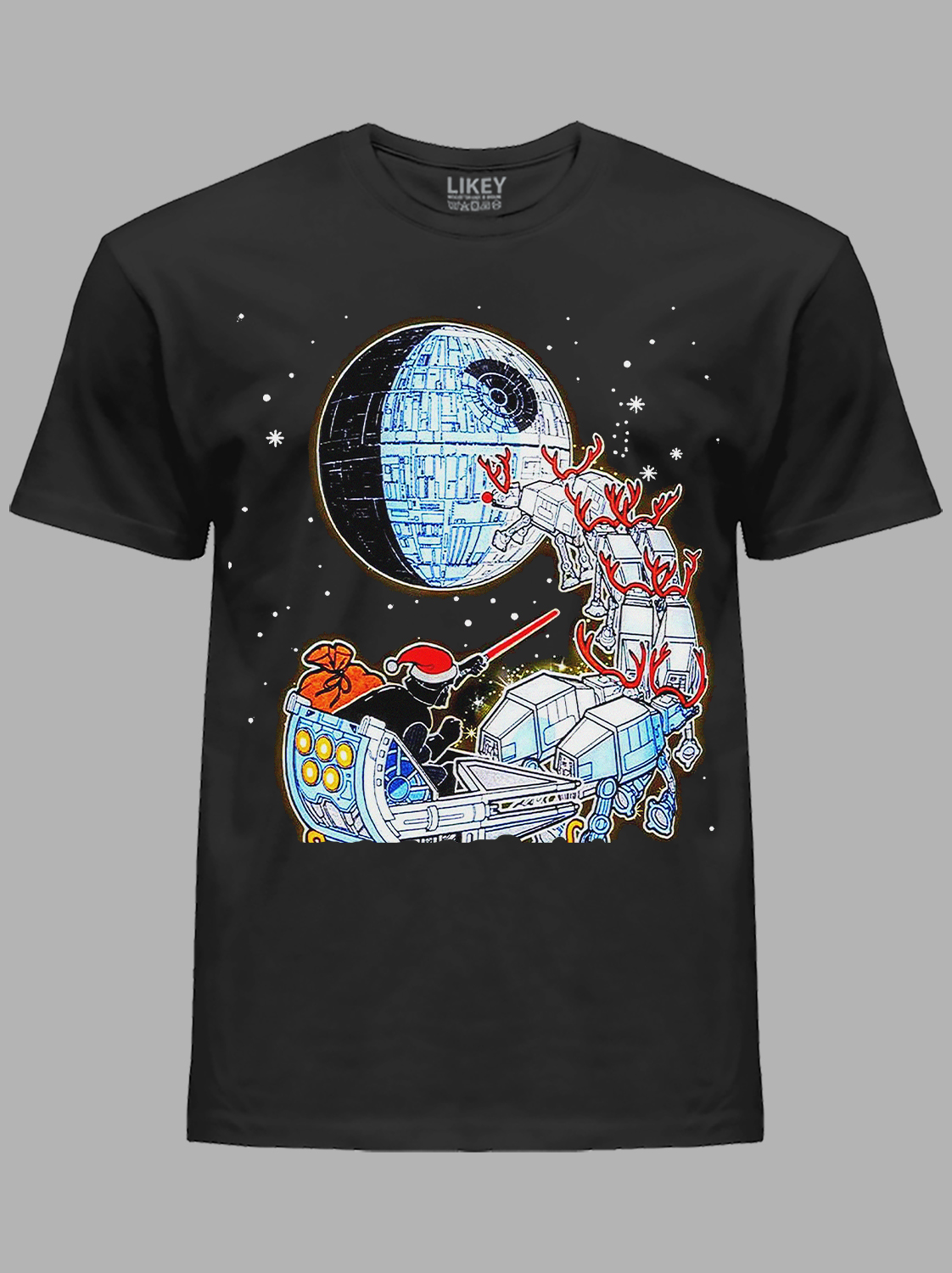 Новорічна футболка чоловіча з принтом "Санта Вейдер і снігові Штурмовики" (24110049)