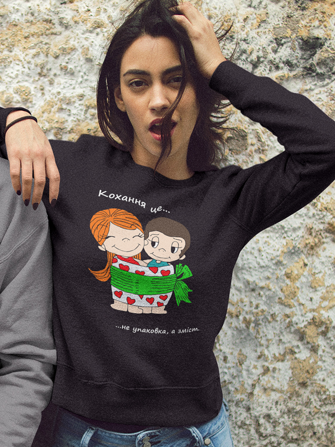 Світшот до Дня закоханих з принтом Love is - відчувати биття сердець одне одного (0227)