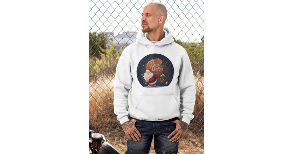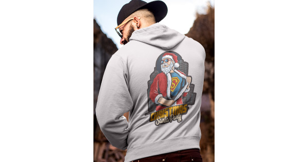 Толстовка чоловіча худі з новорічним принтом Santa with gifts (Санта з подарунками) - 2113