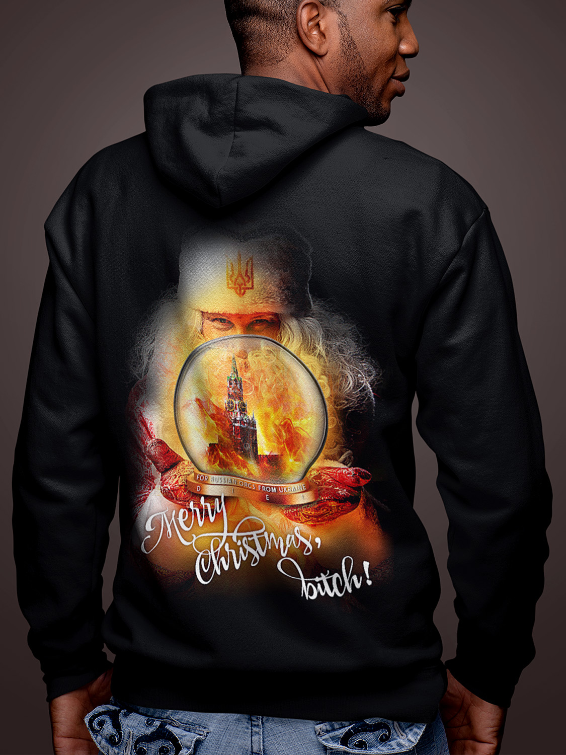 Толстовка чоловіча худі з новорічним принтом Merry Christmas - 01-santa