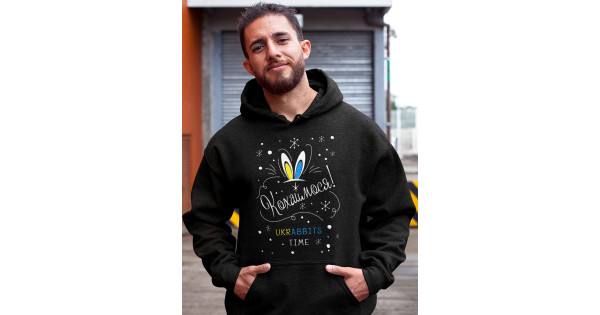 Толстовка чоловіча худі з новорічним принтом Кохаймося - 02-rabbit