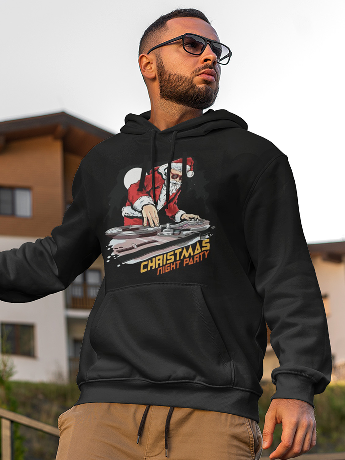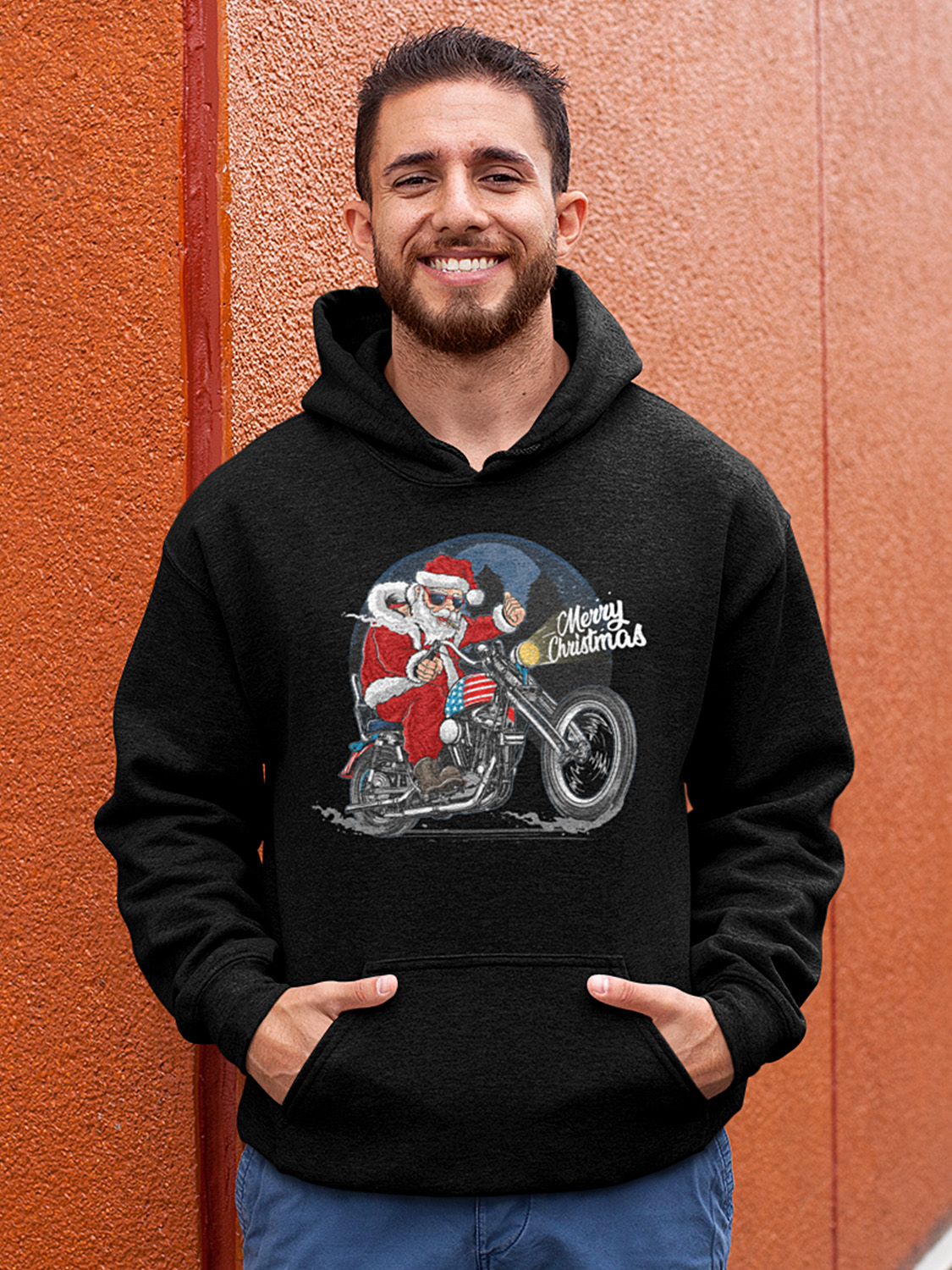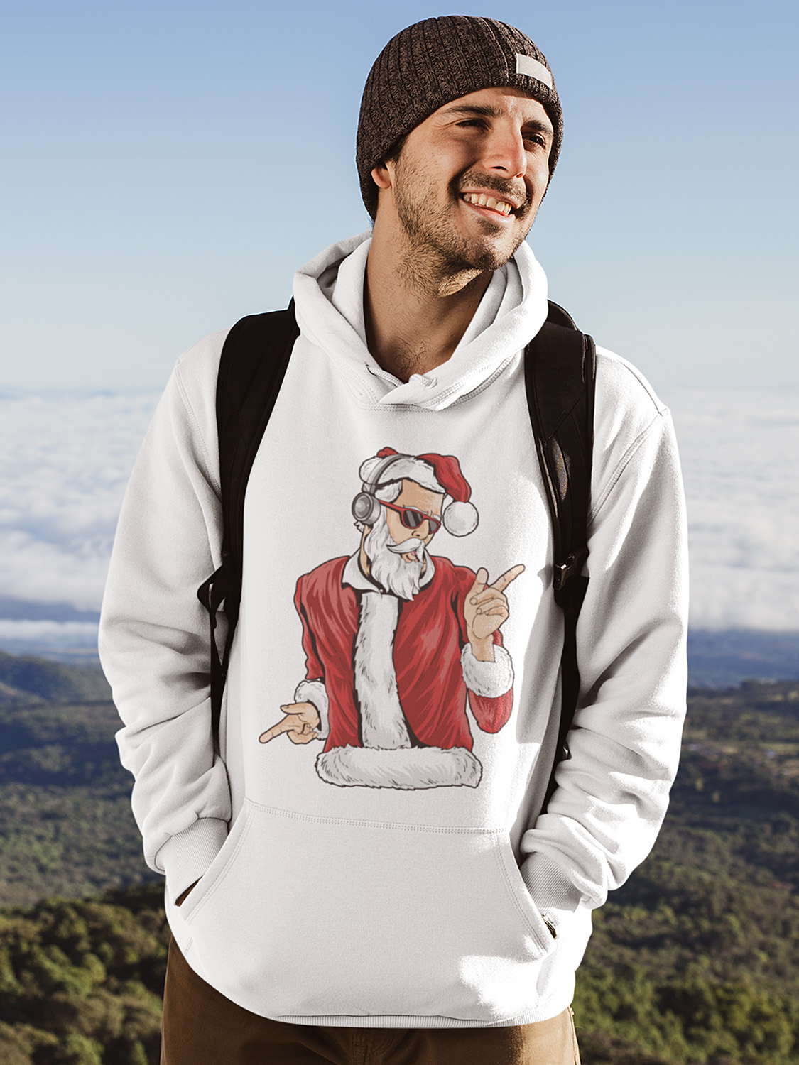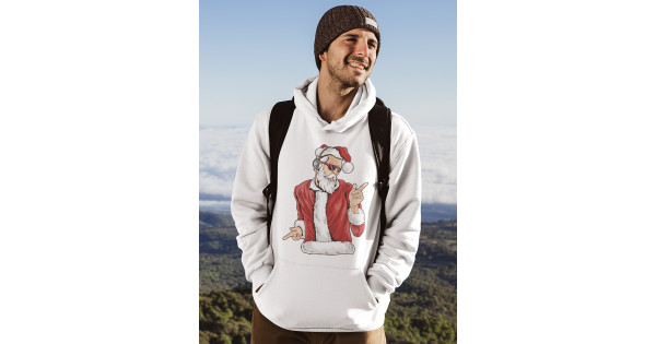 Толстовка жіноча худі з новорічним принтом Санта хіпстер - 211205